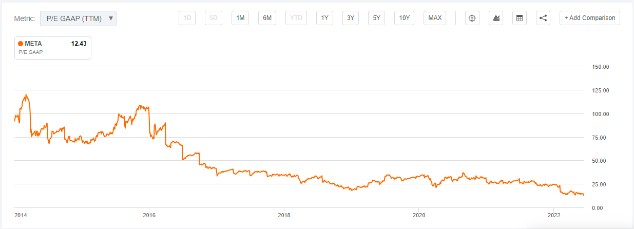 There’s a case to be made that XLC is the more attractive ETF today. Size and profitability are roughly the same, as indicated by each portfolio’s weighted-average market capitalization and Seeking Alpha Profitability Grade. Revenue and earnings growth are also about the same, but XLC is trading 1.40 points less on a forward earnings basis. The reason is primarily because of Meta Platforms’ attractive 15.02 forward P/E. Meta trades at 12.43 earnings on a trailing basis, which is about its lowest ever.
