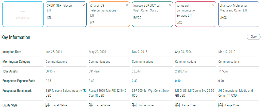 Investors should also consider five other Communication Services ETFs, as shown below. The Vanguard Communication Services ETF (VOX) is the second-largest next to XLC, with $2.93 billion in assets under management and a low 0.10% expense ratio. The SPDR S&P Telecom ETF (XTL) may be an exciting choice for those looking to diversify by size, but naturally, you’ll have to give up some quality in terms of profitability. That may not be the direction you want to go in a prolonged bear market.