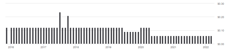 Over the past decade, a pattern of an extra-large payout at year-end has developed. Unfortunately, the yearly amounts paid are not growing. Seeking Alpha provides a dividend scorecard for ETFs and gives VGK a “B”, apparently on the strength of their yield and consecutive payment record.