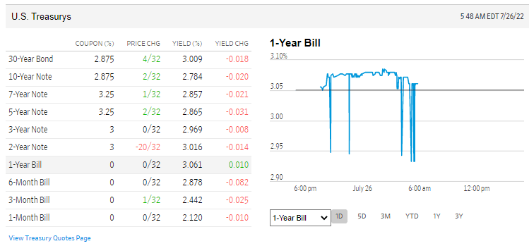 Heading into the Fed’s decision Wednesday afternoon, Treasury rates are off their mid-June highs. The one-year yield is more than five basis points higher than the 30-year bond rate. Soon, we might see ultra-short-term Treasury yields above long-term bond rates.