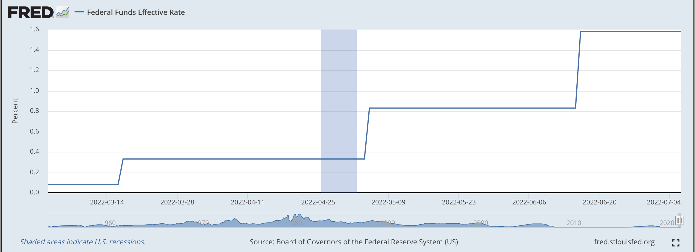 And, then again, in June, the Fed voted to raise the range by another 75 basis points.