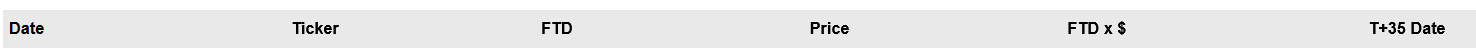 High Failures to Deliver: AMZN, SPY, SPIB, YLD