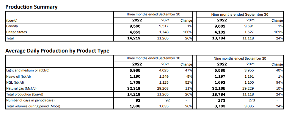 During the third quarter, the average attributable oil production rate was 14,219 barrels of oil-equivalent per day. Approximately 30% of the production now comes from the United States as Freehold has been focusing on increasing its exposure to US assets through acquisitions. Interestingly, only about half of the oil-equivalent production actually consists of oil. Natural gas liquids make up over 10% while the natural gas output represents approximately 38% of the oil-equivalent production.