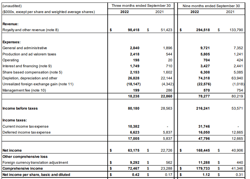 Of course there’s more than meets the eye here, and royalty companies should be valued based on a cash flow perspective. The C$18M in FX gain is a non-cash gain but on the other hand, the C$27M in depreciation and depletion charges and the C$2.2M in share based compensation aren’t cash expenses either.