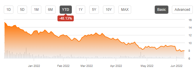 It gets even worse when you take a look at most Metaverse ETFs such as Roundhill Ball’s ETF (METV), conveying the speculative nature of the Metaverse right now: