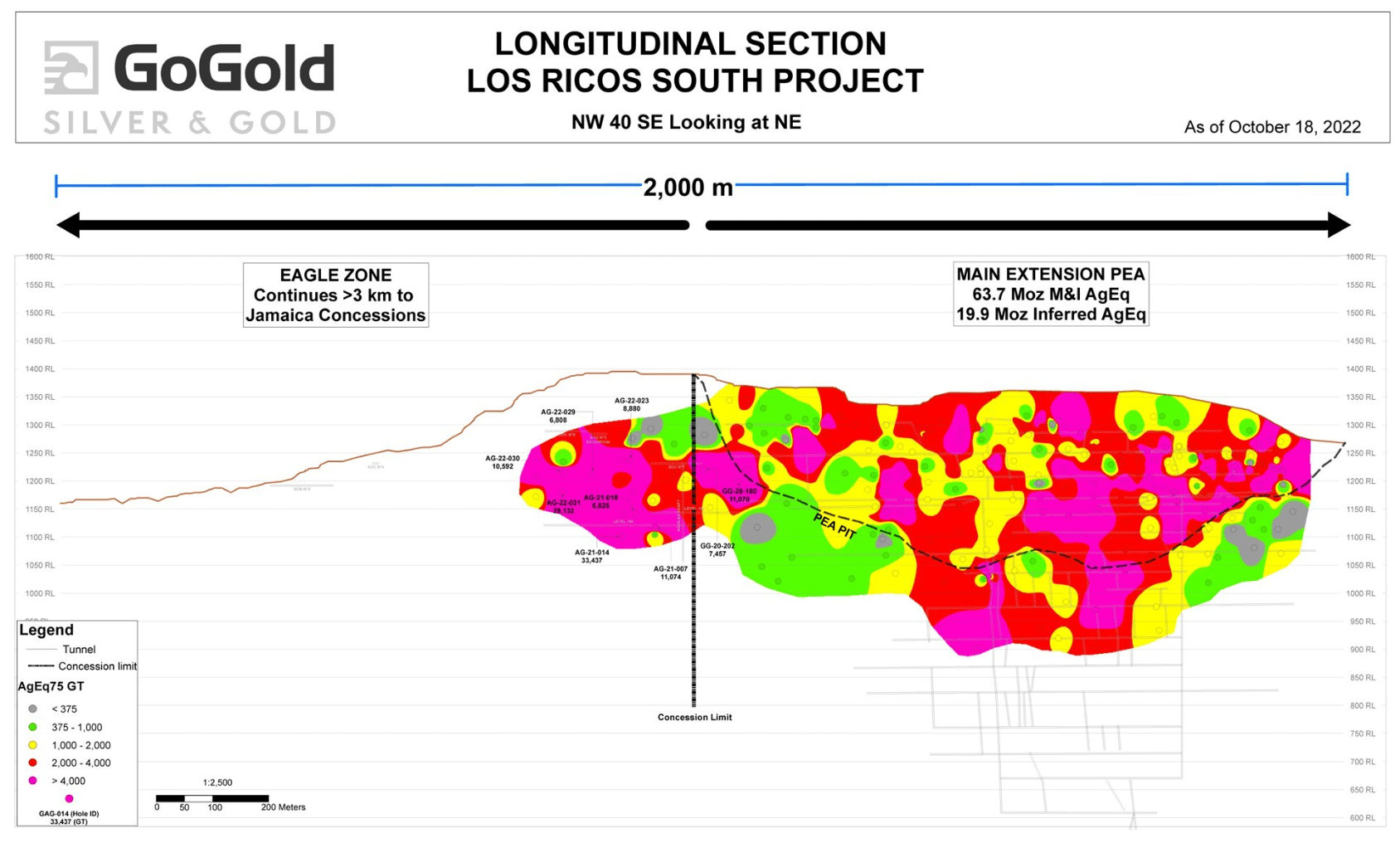GoGold will be adding ounces very quickly if this continues. Very roughly calculated, Eagle could already be 40% the size of the initial resource at Los Ricos South, in ounces. That is why the company will be putting most of the focus on this area going forward.