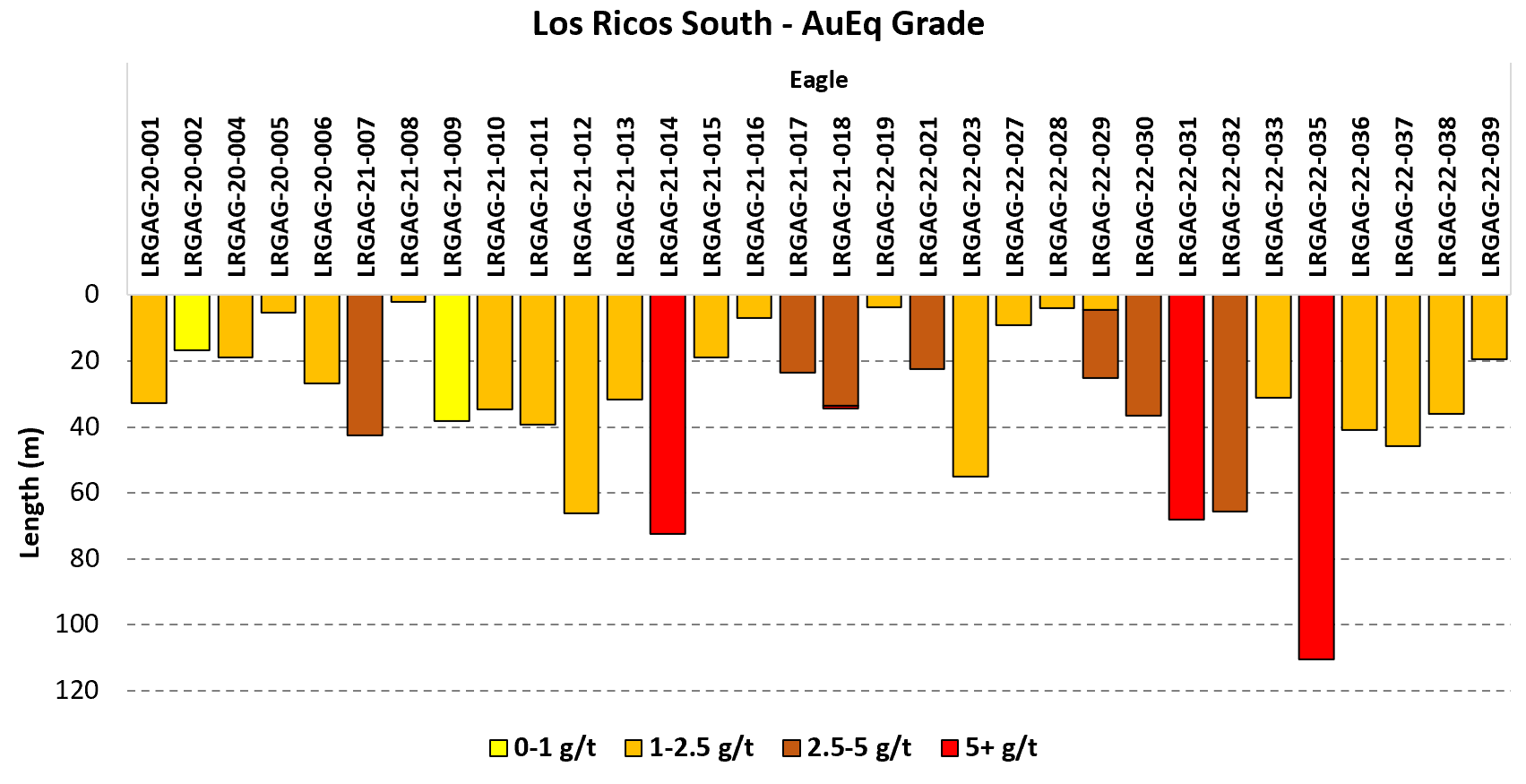 The grades and lengths of the drill results are excellent compared to both the rest of Los Ricos South and the better areas of Los Ricos North.