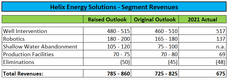 Particularly, the recently acquired Shallow Water Abandonment segment (the former Alliance business) is expected to outperform initial expectations significantly:
