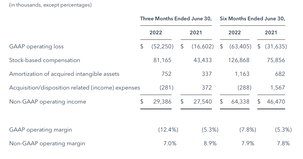 HubSpot Q2 operating margins (HubSpot Q2 earnings release)