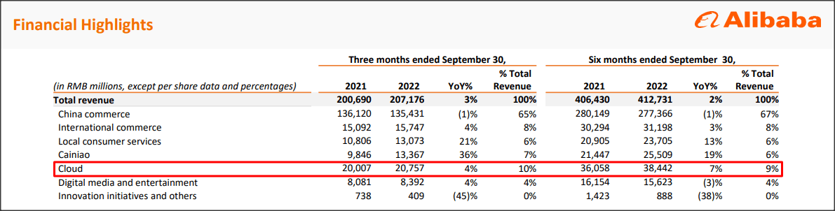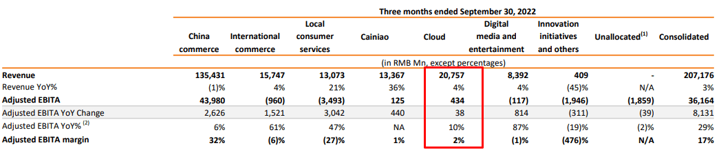 Alibaba’s Cloud segment generated 20.8B Chinese Yuan in revenues (which calculates to approximately $2.9B) in the September-quarter, showing 4% year over year growth. The segment saw robust demand especially from the financial services, telecommunication and public services industries in the last quarter and although growth has slowed after the pandemic, the business is in a long term upswing.