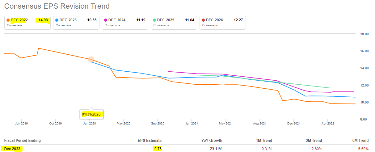 Of course all of this could be priced in, in which case you could make a case to buy. On that front, we don’t buy that it has been priced in. Sure, if you went by consensus earnings estimates and used the non-GAAP variety, it looks fine at 13X 2023 earnings.