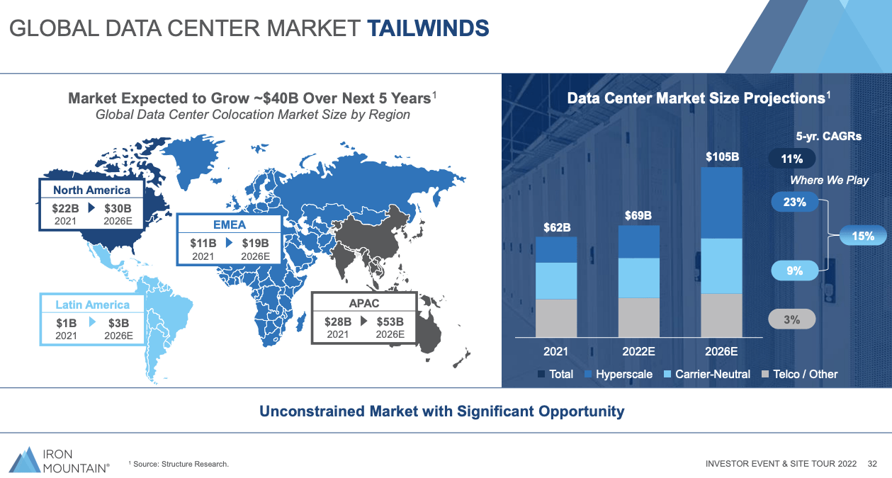 Iron Mountain already had a reliable business model, but by making the decision a few years back to expand into data centers, it has taken a mature company and turned them back into a growing business.