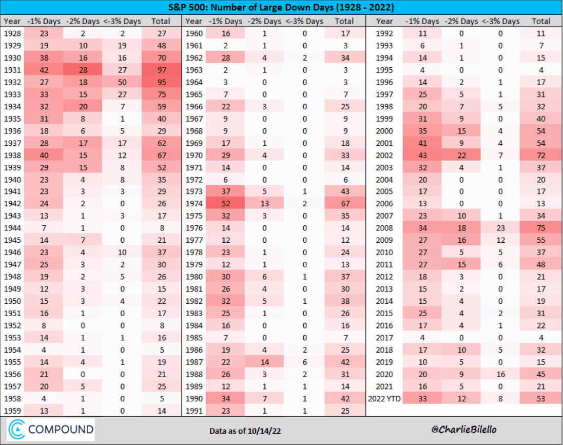 We can see from the above table, courtesy of Compound Advisors, that 2022 has exhibited the largest down volatility since 2009. This is far from normal, and speaks volumes to the viciousness of the bear market. Up, and range bound markets experience low volatility profiles. Bear markets on the other hand see-saw without cessation until investors ultimately capitulate. Let us just have a look at the past 5 days: