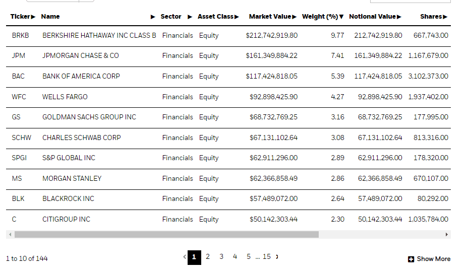 While there are 139 holdings, and it is diversified from totally idiosyncratic management and execution risks, there’s quite a lot of skew on the portfolio because there are a lot of small, regional financial players in the US that command small value weightings.