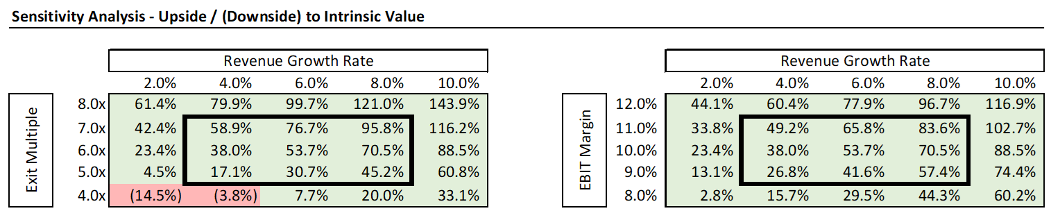 Looking at the sensitivity analysis, it would take a 2% growth rate and a multiple of 4x to produce a 15% downside, which is easily offset by the 7% returns implicit in the discount rate. There are simply too many more pathways for upside than downside in JetBlue’s case, that I believe, from a long-term investment perspective, it’s hard to not see favorable risk/reward. The near-term will undeniably be turbulent, but a 2% growth rate and a 4x multiple from this low trough is not a particularly high bar.