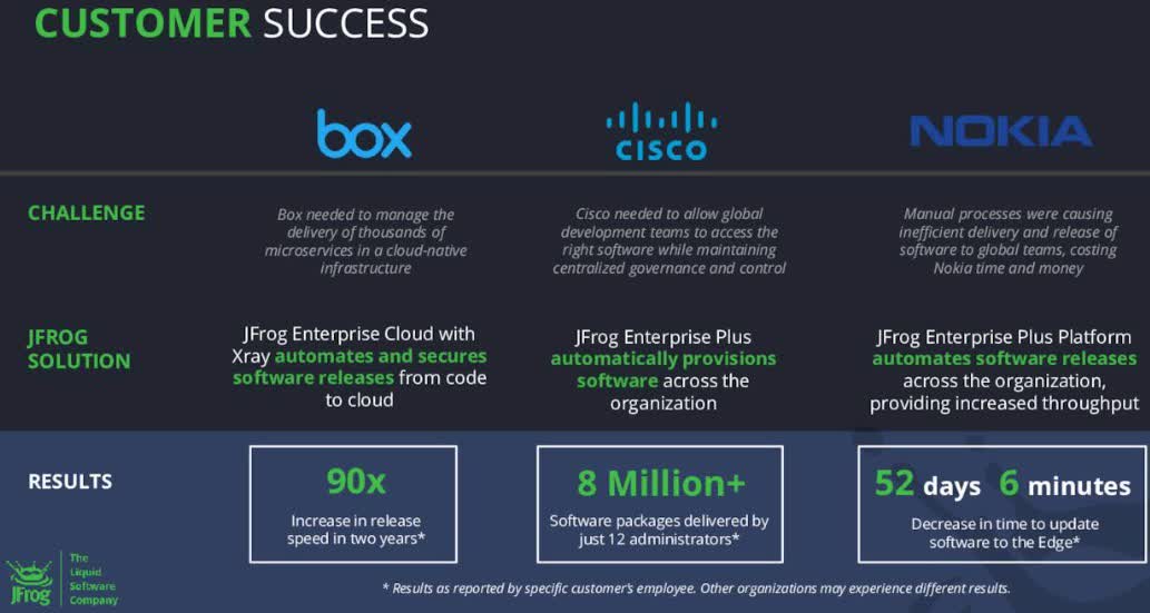 Examples of customer success for JFrog (JFrog Earnings Presentation)