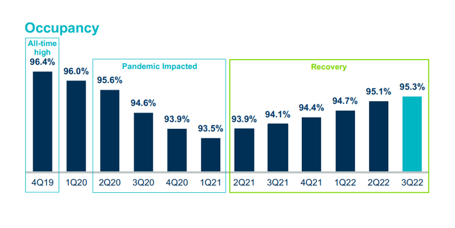 The occupancy rate is the most telling indicator of Kimco Realty’s ongoing recovery from the Covid-19 pandemic. The occupancy rate at the real estate investment trust was 95.3% in the September quarter, marking the sixth consecutive increase since 1Q-21.