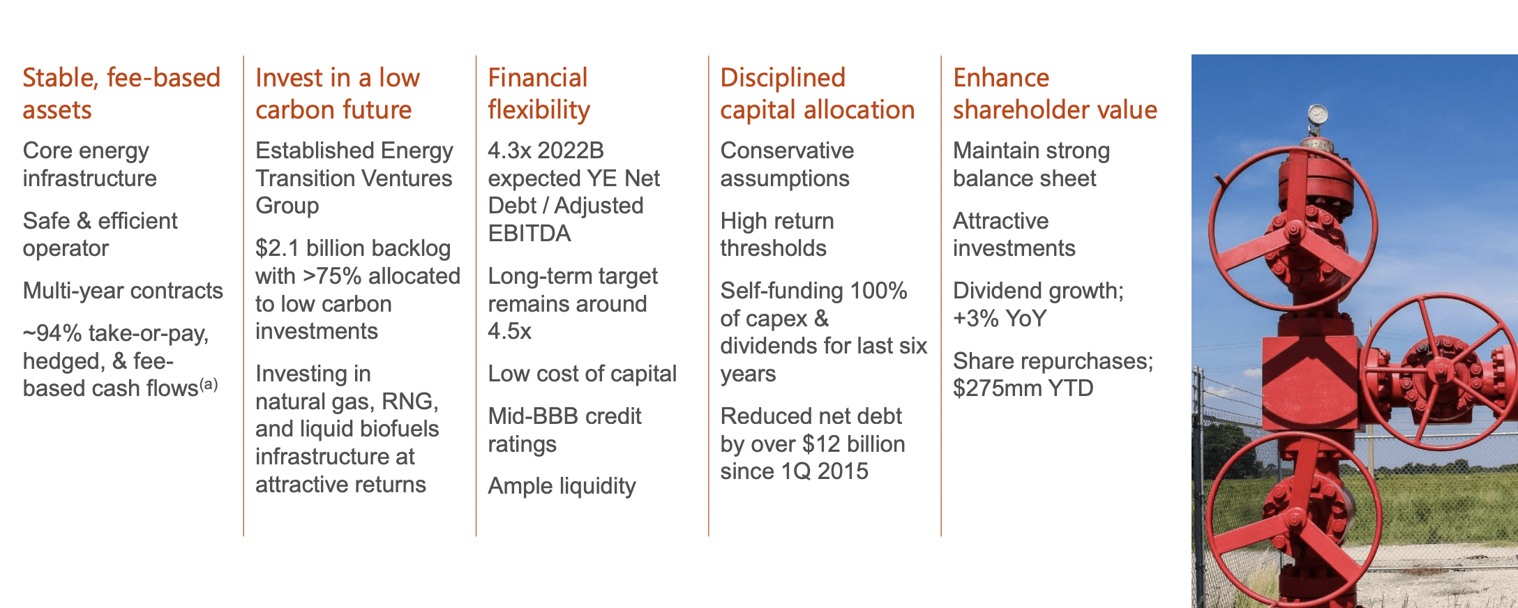 In a market where opposition to pipelines is increasing, the company has a strong and tough to replace portfolio of assets that we expect it to use to drive substantial returns.