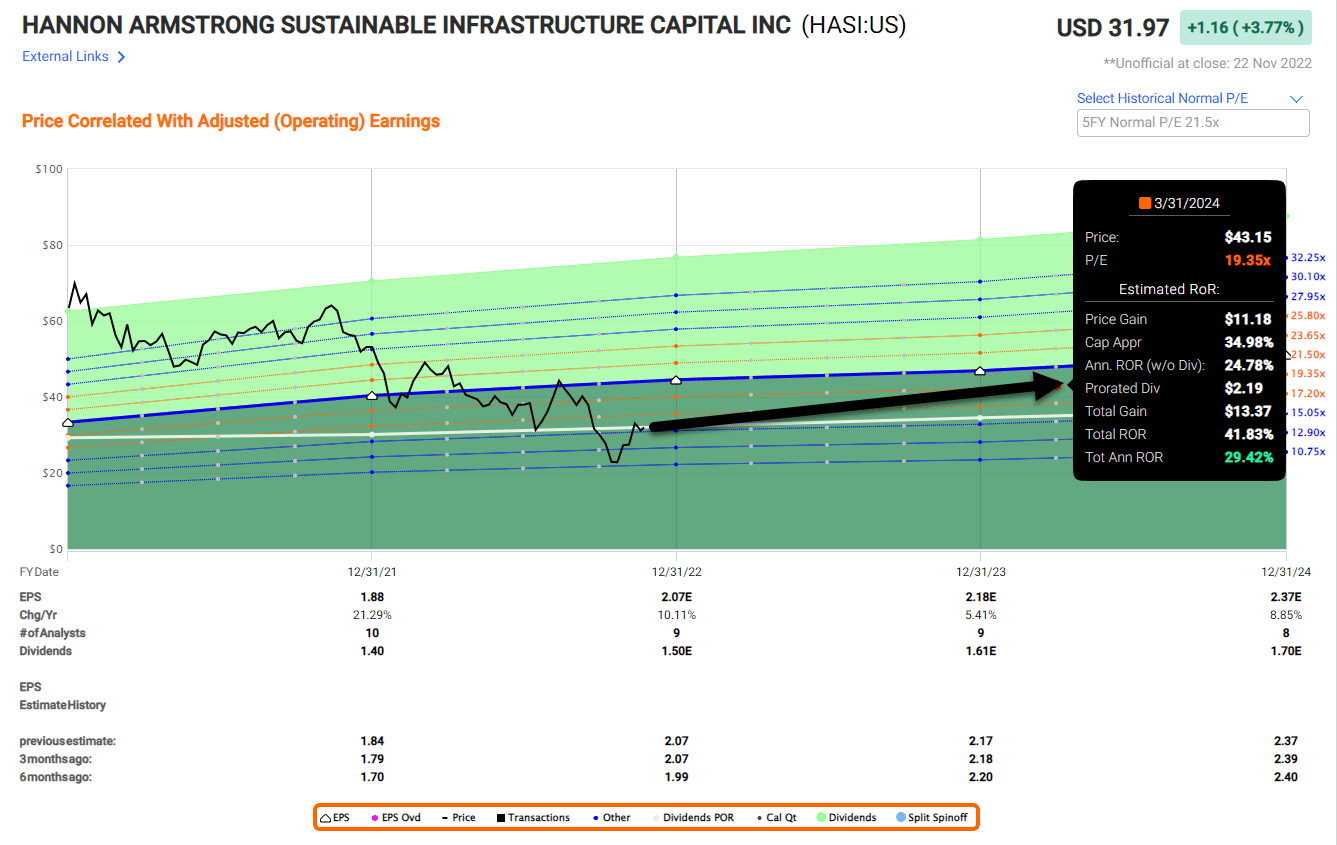 It’s in markets like we’re in now that you want dependable income that’s increased in “thick or thin”. I am continuing to add to my HASI position as it has become a larger holding in my retirement account. As viewed below, we’re targeting returns of 25% annually.