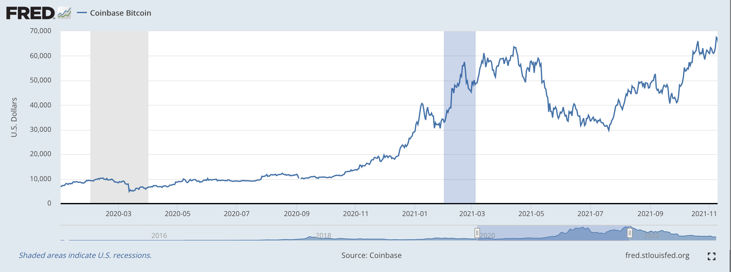 And, where the price of one Bitcoin (BTC-USD) was only around $10,000 in the early later months of 2020, the price rose to around $67,500 in November of 2021.