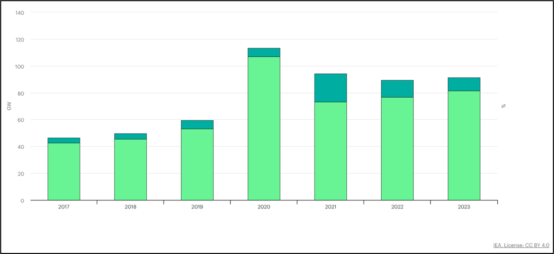 Onshore & Offshore wind production is expected to continue to grow with 2023 onshore wind representing 81.4 GW and offshore wind representing 10GW.