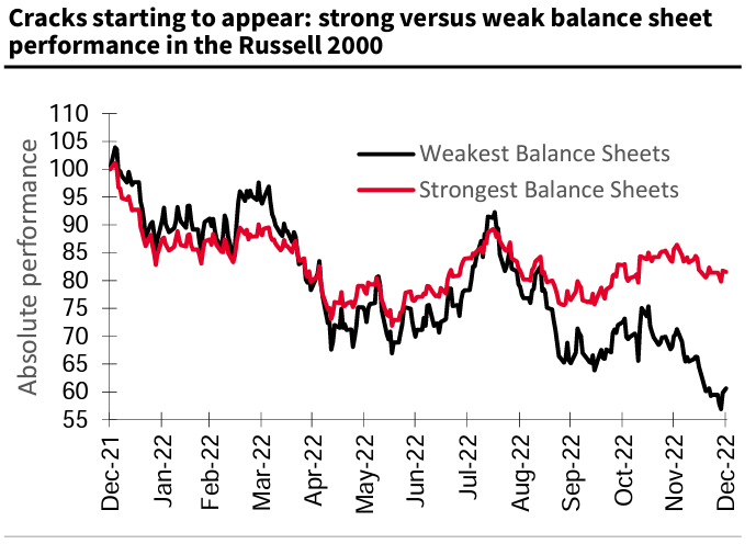 There are bargains to be had in mid- and small-cap stocks that cannot be found in the largest companies. Therefore, a further decline in the major market averages, should it occur, is more likely to be a function of rotation from expensive growth to more reasonably priced value than a broad decline in all stocks. That is what we saw yesterday. It also requires a focus on quality, which means value-oriented companies that are strengthening their balance sheets, because low-quality names continued to underperform going into year-end.