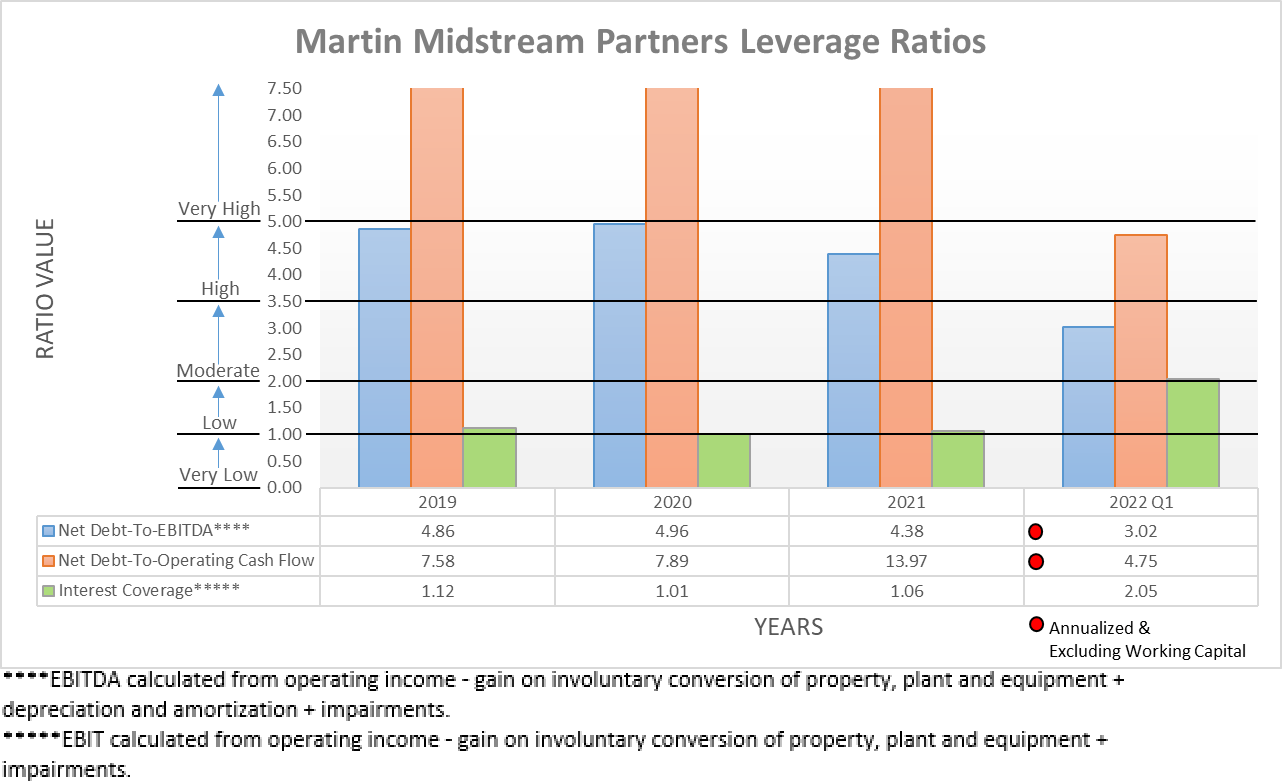 Notes: Unless specified otherwise, all figures in this article were taken from Martin Midstream Partners’ SEC filings, all calculated figures were performed by the author.