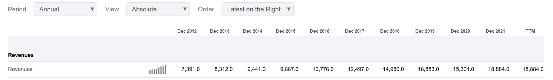 Gross revenue has increased in all but one of the last 10 years — an impressive feat for a company as mature as Mastercard.