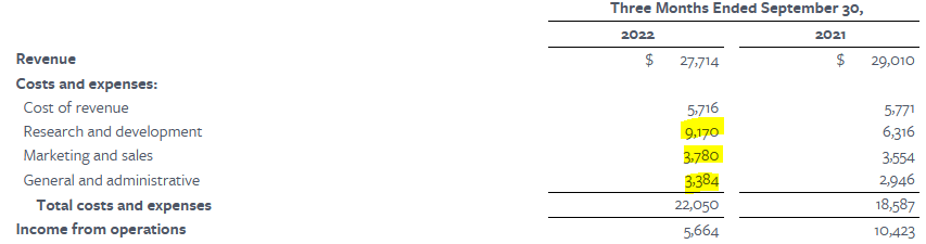 At the after-hour price of $113 per share, Meta is trading for just 11.5x this year’s expected net profit. When we account for Meta’s net cash position, the valuation is even lower. With META down more than 70% from its highs, the market is clearly accounting for major issues when pricing Meta’s shares. And that makes sense, at least to some degree – the success of the Metaverse strategy is, so far, not proven, and the expense growth rate is a major issue that needs to be addressed.