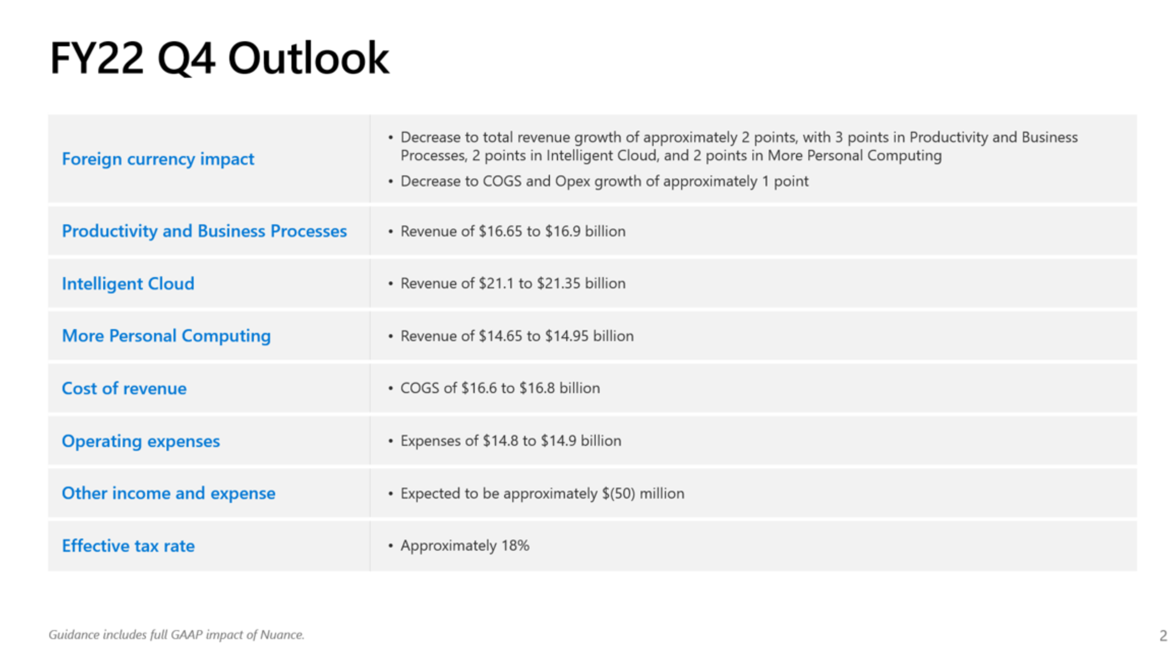 Now the market expects concrete numerical support for this statement. The expectations for Microsoft’s cloud topline growth are highly elevated and have not decreased one iota, even amidst the challenging macro-environment. Notably, Microsoft guided revenue from intelligent cloud between $21.1 and $21.35 billion. If materialized, this would imply a quarter-over-quarter growth of more than 10% – and about 50% on an annualized basis.