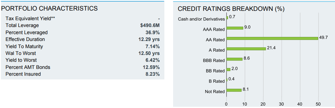 MYI’s AUM is $828M, which is a pretty good size for a Muni fund. The daily trading volume is decent, around 200K. The most notable feature is the NAV discount at 10.19%. I consider it a cheap price for a CEF of this size.