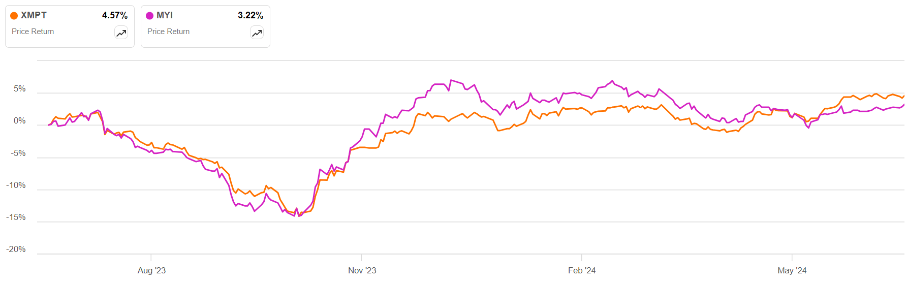 MYI sports a tax-exempted monthly dividend with a 5.95% distribution rate. It is an excellent rate for investors in a high tax bracket. The distribution hit the lowest level at 0.0405 in 2023, and it’s been back up in 2024 to 0.0555, which is the highest regular distribution since 2018. This is a good sign for the fund to have a better year in 2024.