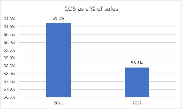 As sales growth outpaced growth in costs, the cost of sales as a percentage of sales decreased from 61% to around 58%. This is an exceptional performance given inflationary pressures are significantly higher now compared to the same period a year prior, especially key commodities (such as beef).