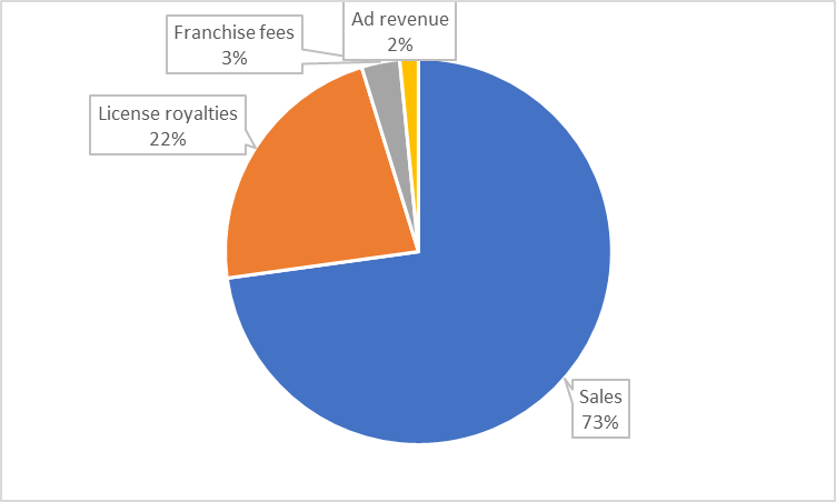 License royalty sales grew 10%. Franchise fees and ad funds revenue grew 3% and 6%, respectively, but only amount to a fraction of total sales.