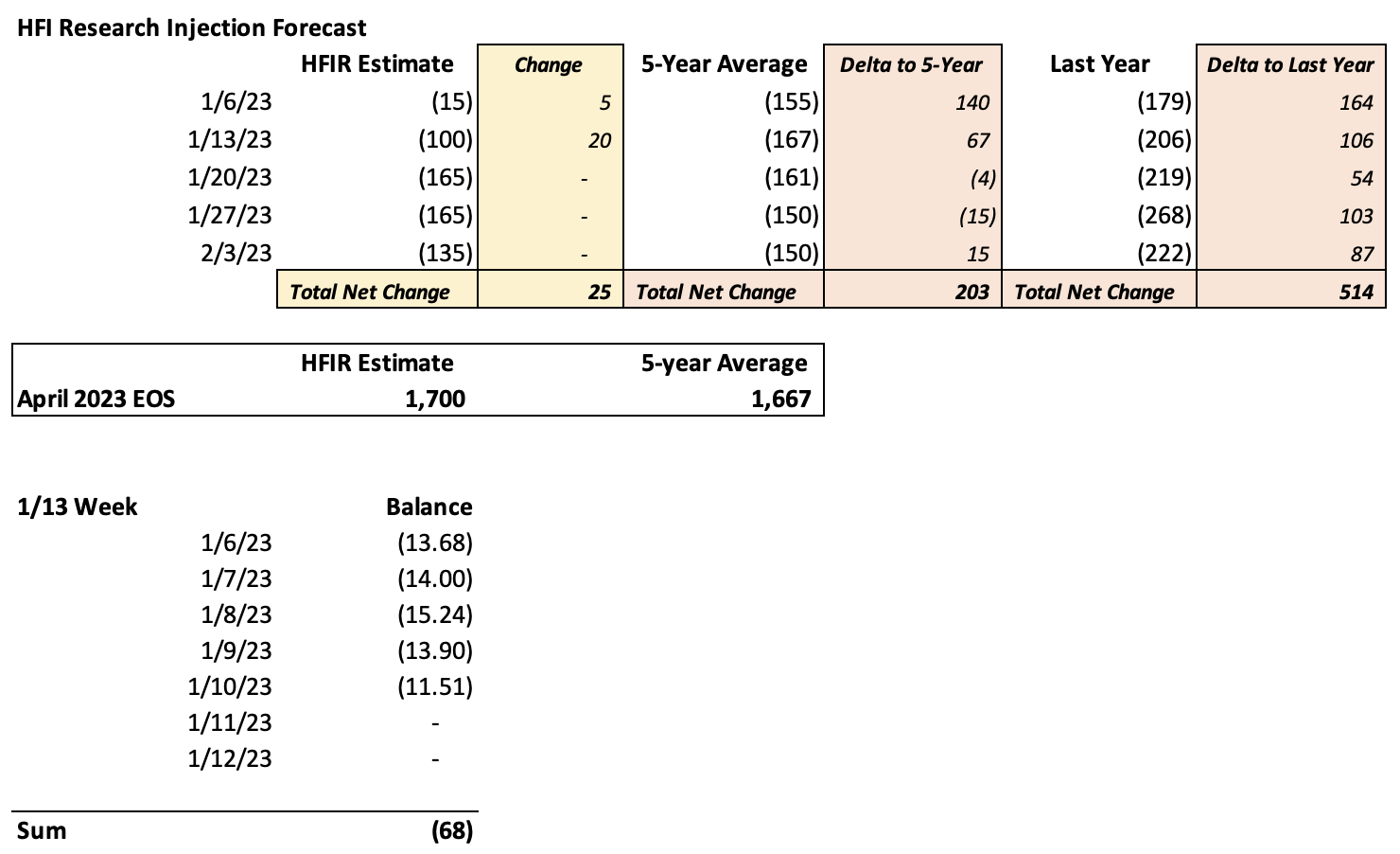 If you look at our current estimate for 1/6 week, we have a draw of 15 Bcf. This would be compared to -155 Bcf for the 5-year average and -179 Bcf last year.