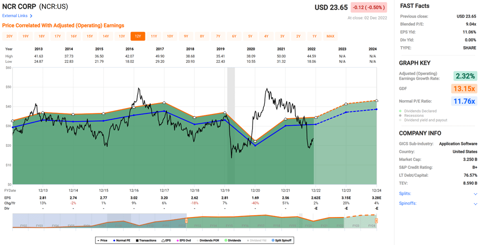NCR is a software-led company that is benefiting from strong demand across its retail, hospitality and banking businesses. The upcoming split of NCR into two companies will allow the newly formed ATM SpinCo to have a stable recurring revenue stream and deliver dividends to shareholders. Valuation wise, I find NCR attractive with a forward PE ratio below its normal average with strong upside potential.