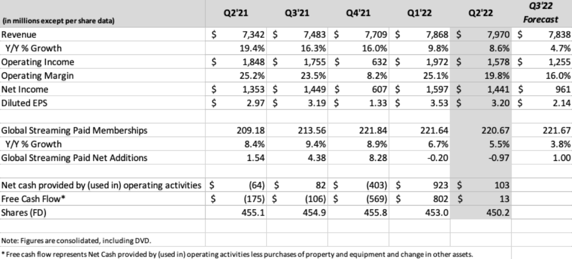 Due to a dollar that appreciated greatly against international currencies Netflix suffered $339 million in foreign exchange losses in Q2 2022, otherwise year-on-year revenues would have grown 13% instead of 9%. The wide geographic diversification of Netflix’s revenues had a large impact on this negative result, but it should be considered that this is more unique than rare: it has been 20 years since the dollar reached parity with the euro. As announced by the company this negative exchange rate effect could also affect future revenue growth: