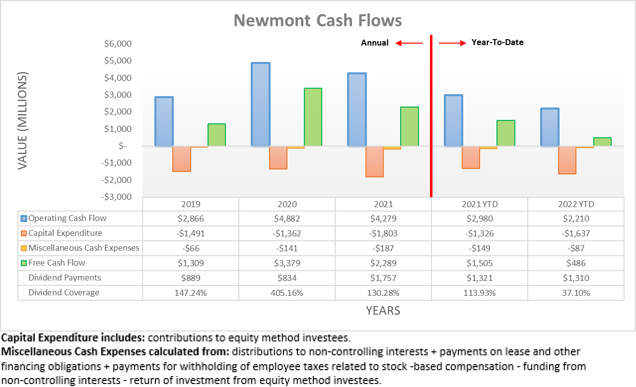Notes: Unless specified otherwise, all figures in this article were taken from Newmont’s SEC filings, all calculated figures were performed by the author.