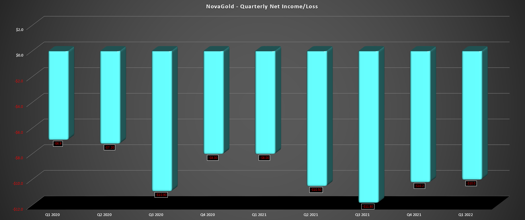 NovaGold – Quarterly Net Income/Loss (Company Filings, Author’s Chart)