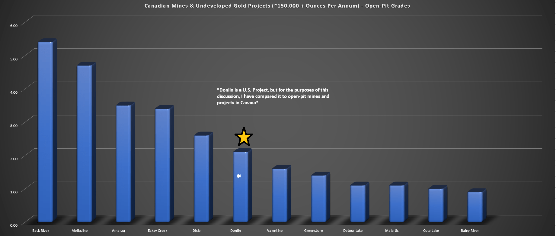 Donlin Project – Grades vs. Canadian Mines/Projects (Company Filings, Author’s Chart)