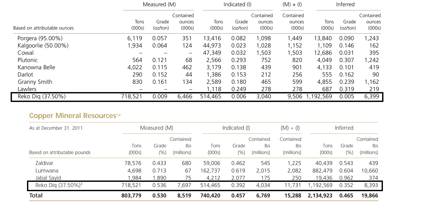 Reko Diq Resource Base (Barrick Annual Report 2011)