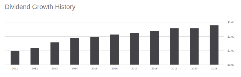 The dividend has been growing nicely over the years, and it has almost tripled from where it stood ten years ago. This is a nice combination of dividend growth and high yield, if an investor is willing to take the recession risk that comes with the shares.