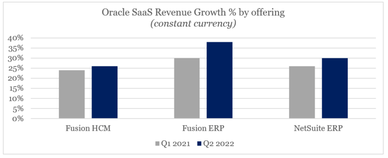 In addition to the ERP offerings, Oracle’s Human Capital Management (HCM) have also accelerated its growth over the first quarter of FY 2023, when compared to a year ago.