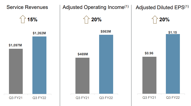 As mentioned at the opening of this article, PAYX delivered on both the top and bottom lines. They had beat expectations with non-GAAP EPS coming in at $1.15 and revenue of $1.28 billion. That was a 15.3% year-over-year increase in revenue. They highlighted that it has now resulted in three consecutive quarters of double-digit revenue and EPS growth. Below is from their investor presentation.