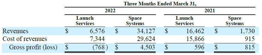 Now, considering the risks involved in launching a rocket, Space Systems is also synonymous with diversification. Additionally, if there is more competition in the launch services industry, the company can rely on this segment as another revenue stream. Space Systems is more profitable too and its non-GAAP gross margins were 28% in Q1 compared to only 1% for Launch Services.