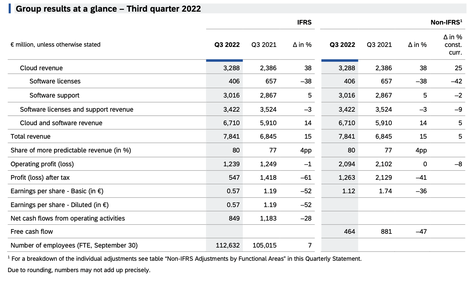 This being said, we will still acknowledge that SAP has printed excellent results that boosted investor enthusiasm of late. Take a look at the Q3 earnings summary below: