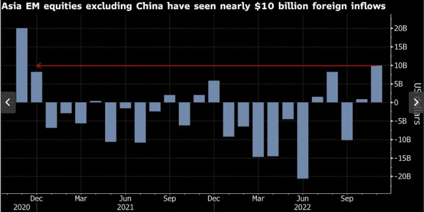 There are certainly two ways to view this. One way is that there is amplified opportunity here as China re-opens. This has been “conventional” wisdom I am starting to see from some analysts and sell-side investment banks. The logic goes that China has been disproportionately impacted by Covid restrictions, and will therefore see stronger gains when it comes out of it.