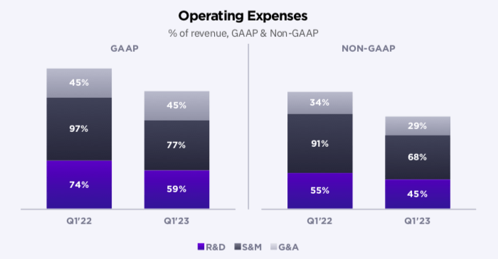 However, non-GAAP operating margins are expected to be negative -55-60%, which does mean the company expects profitability to improve in Q3 and Q4. Yes, increased scale does help the company’s operating expense base, but even at these levels, the company is right around the coveted Rule of 40 level.