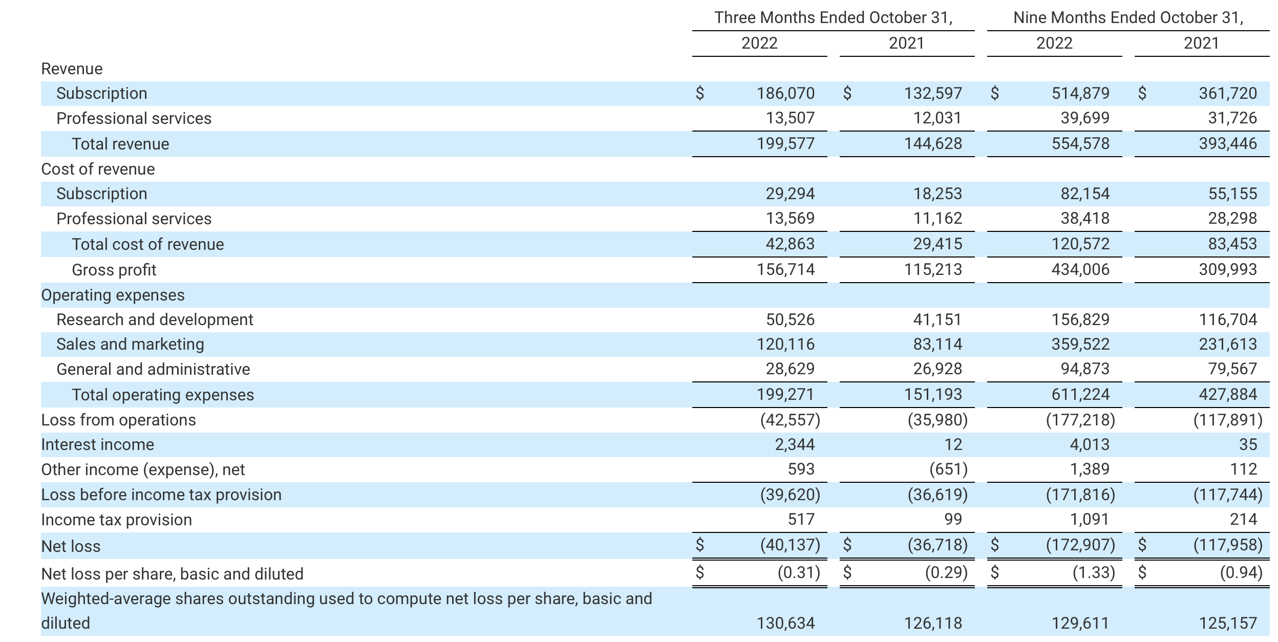 Smartsheet margins (Smartsheet Q3 earnings release)