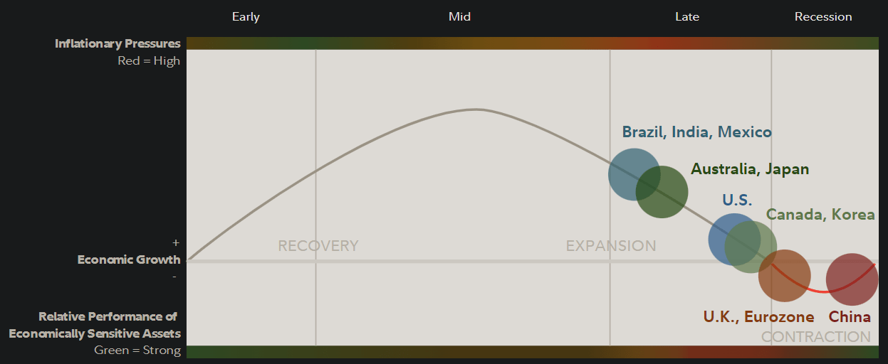 I previously covered SMIN in January 2022 with the expectation that the fund would under-perform vs. the S&P 500 based on valuation alone. However, according to Seeking Alpha data, SMIN has only fallen by -8.43% vs. the S&P 500 U.S. equity index’s fall of -14.61%. India’s positioning in its present business cycle has been lagging behind the United States (see chart below).